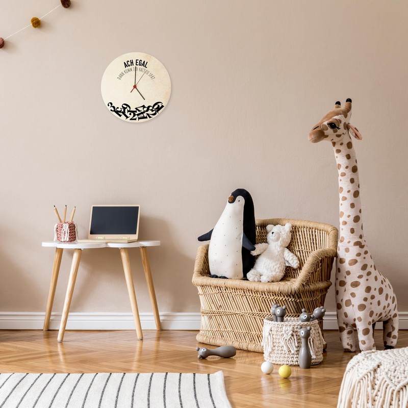 - Box contents: 1 x wall clock "Ach egal dann komm ich halt zu late"