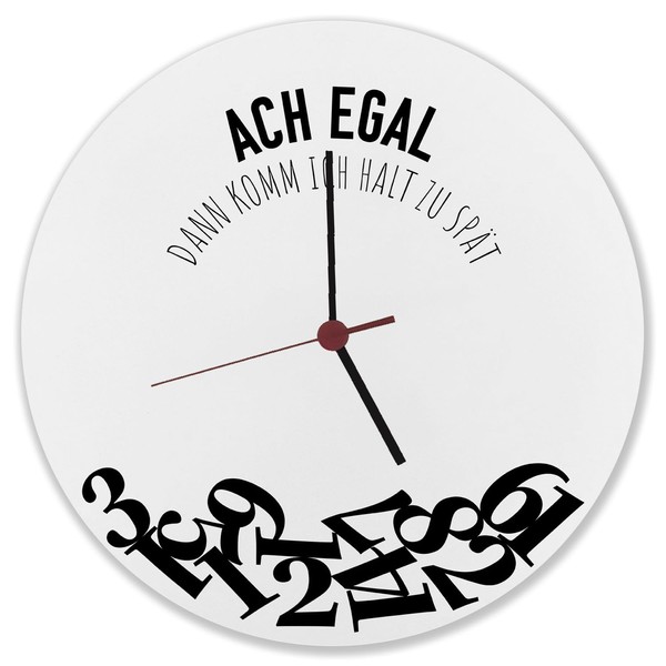 ACH egal dann komm ich Halt zu late, wall clock, funny clock with times confused for late comers as a gift idea for unreliable friends or colleagues