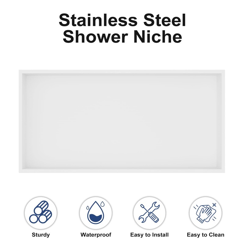 - 【MODERN APPEARANCE】 Stainless steel shower niche with matte white finish, in addition to its stylish and beautiful features, it is also fingerprint resistant and easy to clean. The modern and minimalist look fit any home decoration style