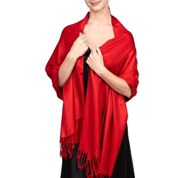 Achillea Large Soft Silky Pashmina Shawl Wrap Scarf in Solid Colors (Red)
