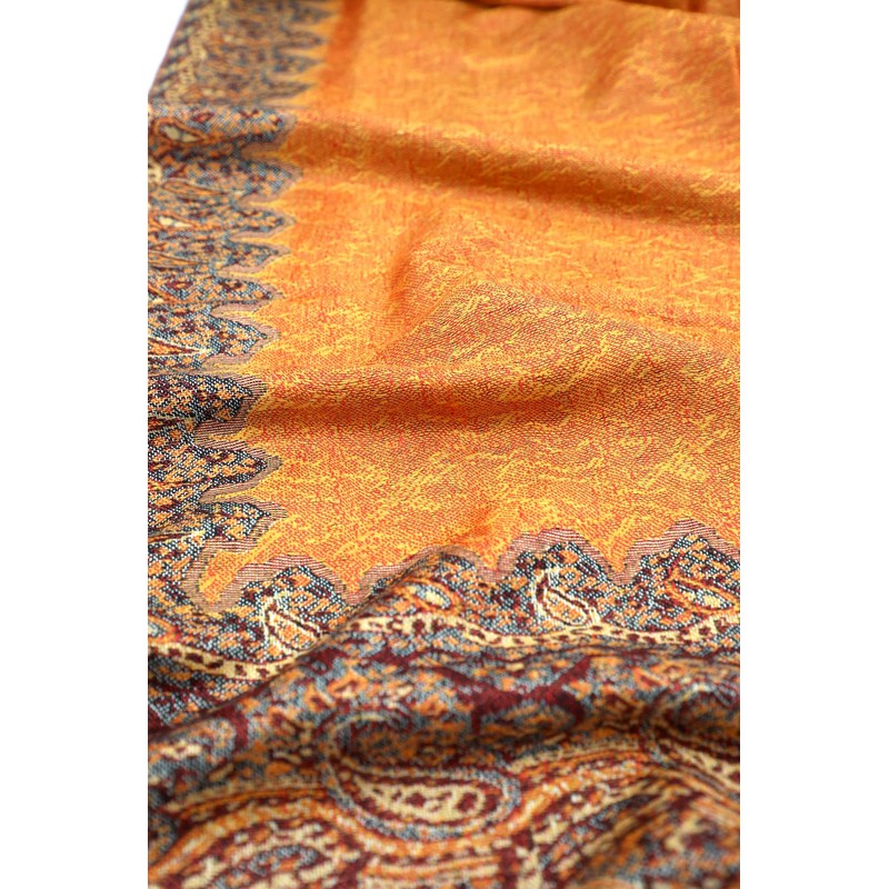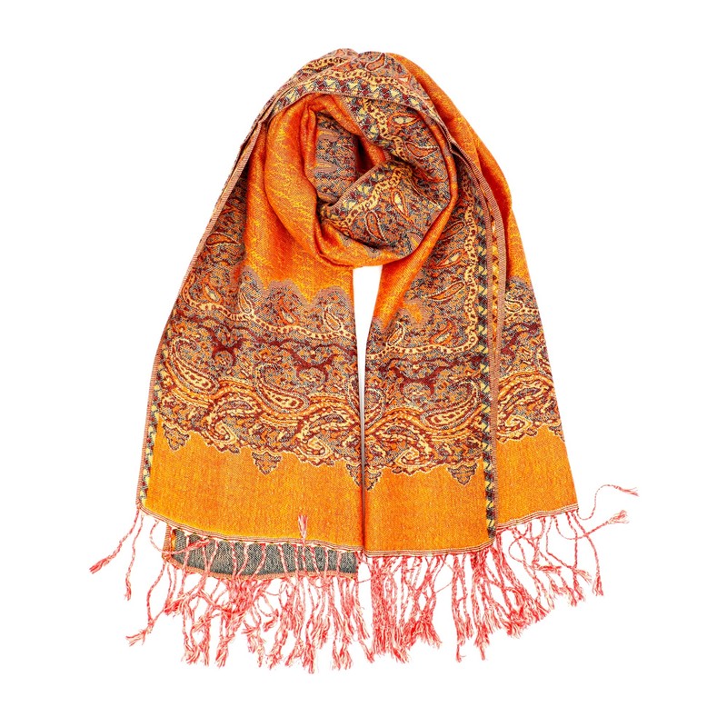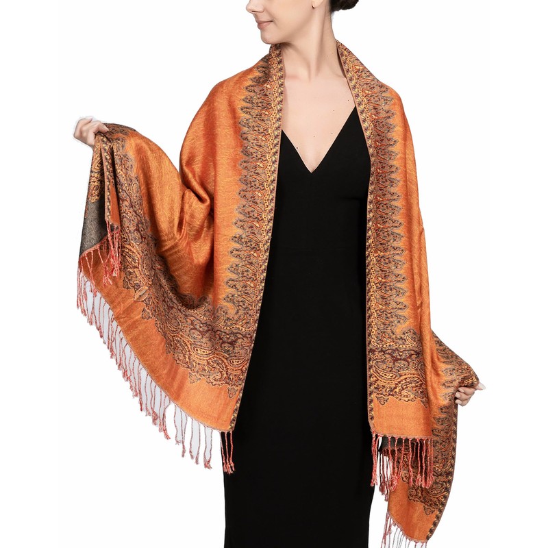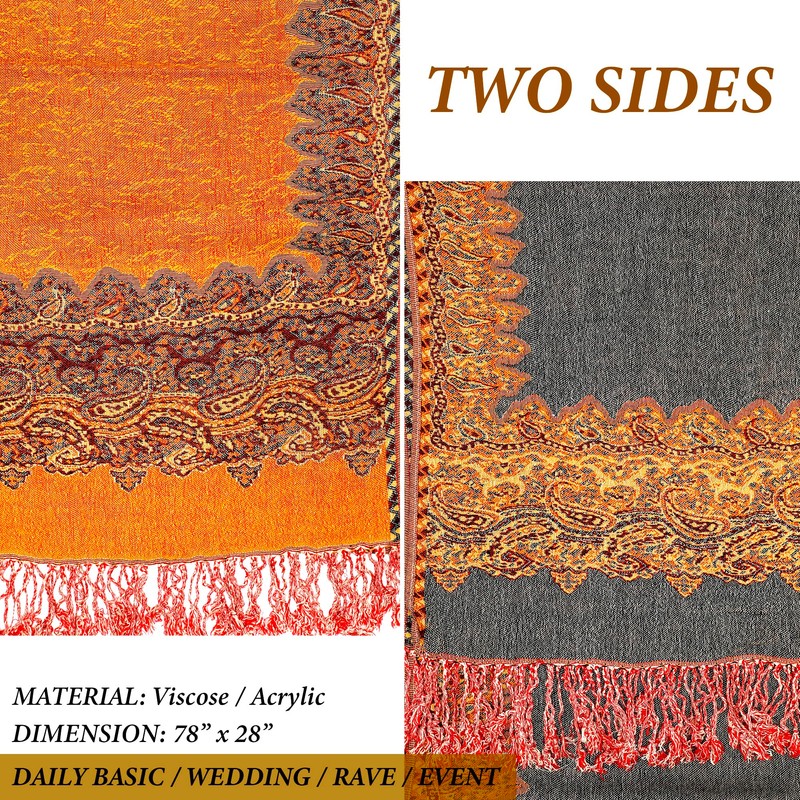 Achillea Luxurious Double Layered Jacquard Big Paisley Pashmina Shawl Wrap Scarf (Orange-Border)