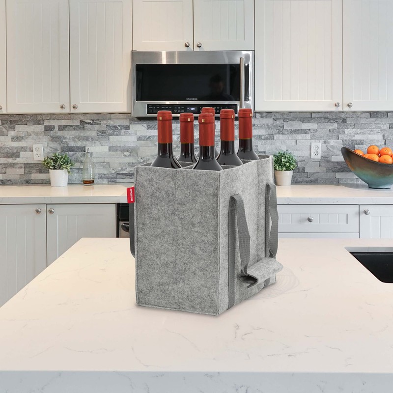 • Noiseless: The bottle basket has felt inner walls and prevents the clinking of bottles when travelling by car, for example. No clinking, no breaking, just practical! Unlike other polyester bottle carriers, our drink carrier is made of high quality felt. This ensures protection when transporting glass bottles.