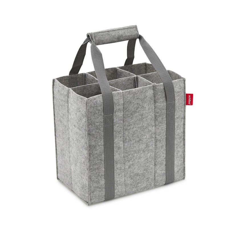 achilles Bottle Bag with Compartments, Also for 1.5 Litre Bottles, Felt Bottle Bag, 100% Recycled (Grey), Holds 6 bottles, Bottle bag