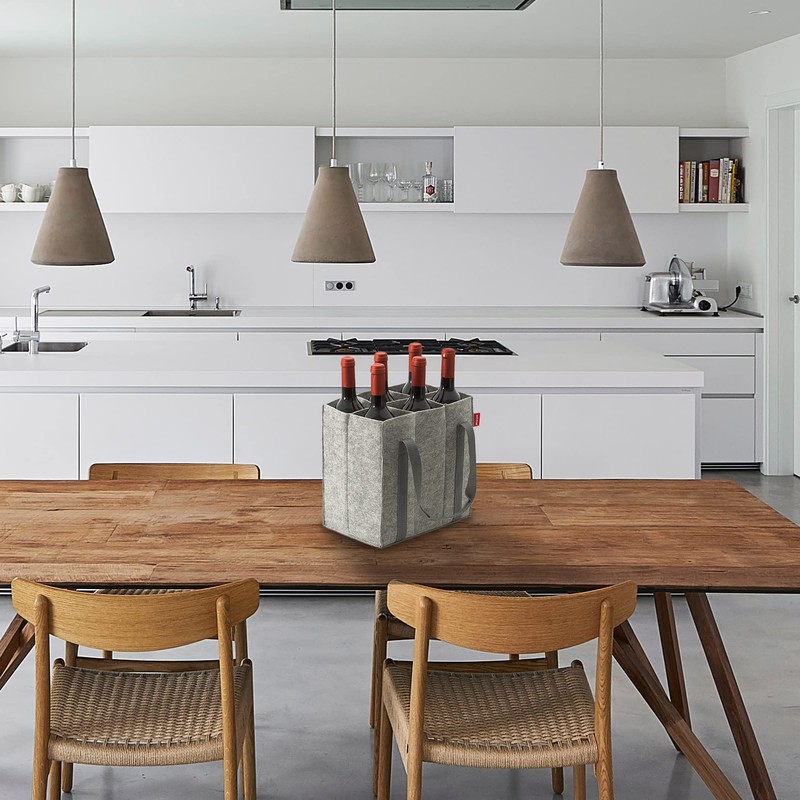 - Noiseless: The bottle basket has felt inner walls and prevents the clinking of bottles when travelling by car, for example. No clinking, no breaking, just practical! Unlike other polyester bottle carriers, our drink carrier is made of high quality felt. This ensures protection when transporting glass bottles.