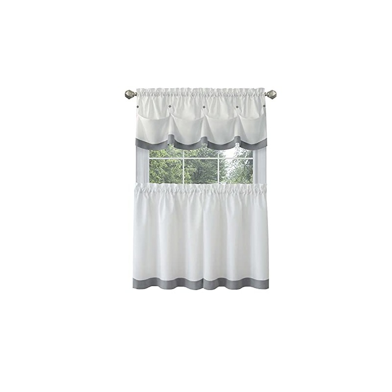 Achim Home Furnishings Lana Window Curtain Tier Pair and Valance Set, 58" x 24", Grey