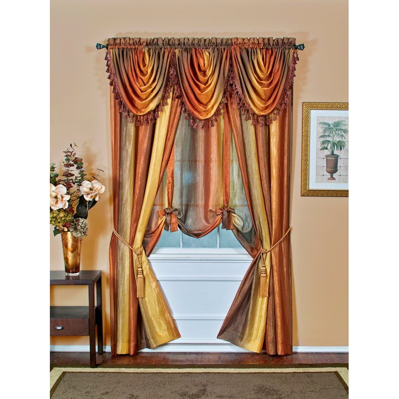 - Rod Pocket Panel with Matching Waterfall Valance, Scarf and Tie Up Shade