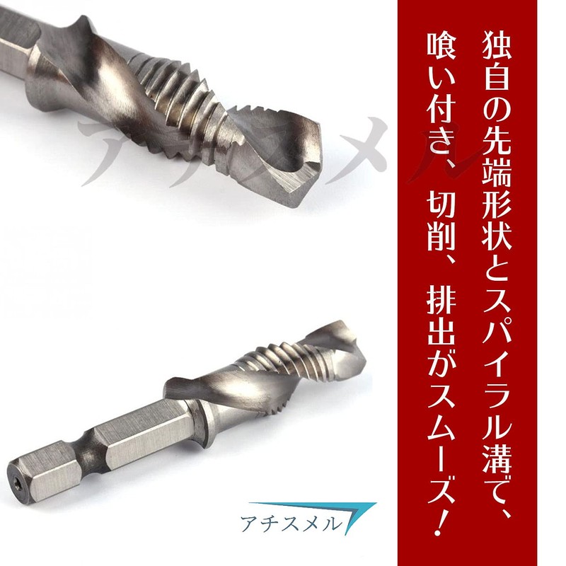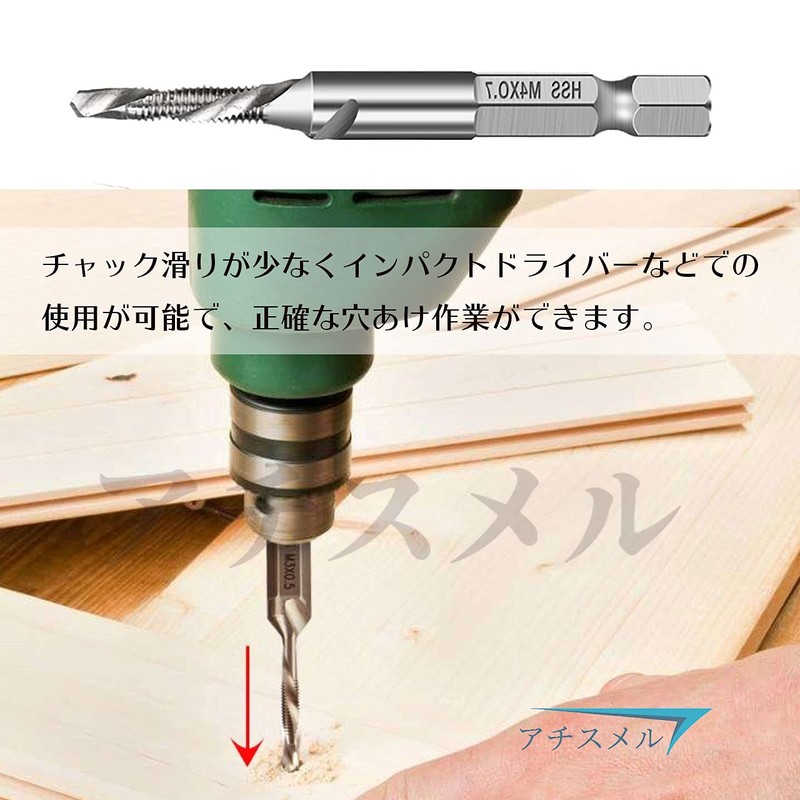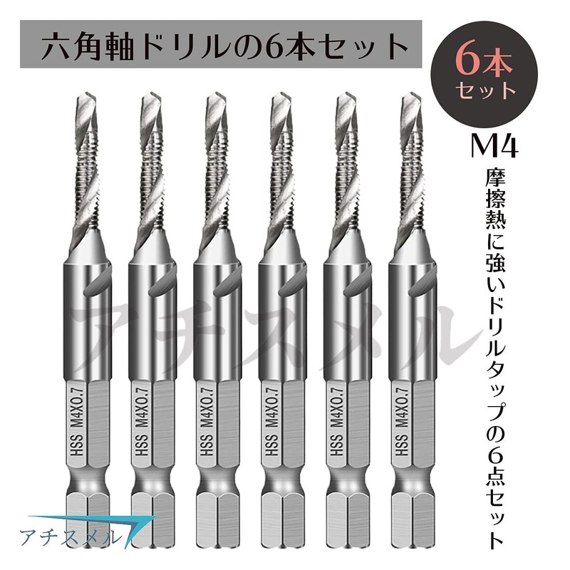 Achisel M4 Drill Tap, Spiral Drill, 6 Piece Drill Bit Set, Drill, Hexagonal Axis Drill, Drill Chuck