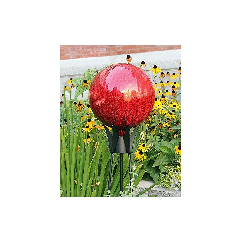 Achla Designs G12-RD-C Gazing, Red 12 inch Glass Garden Globe Ball Sphere, 12