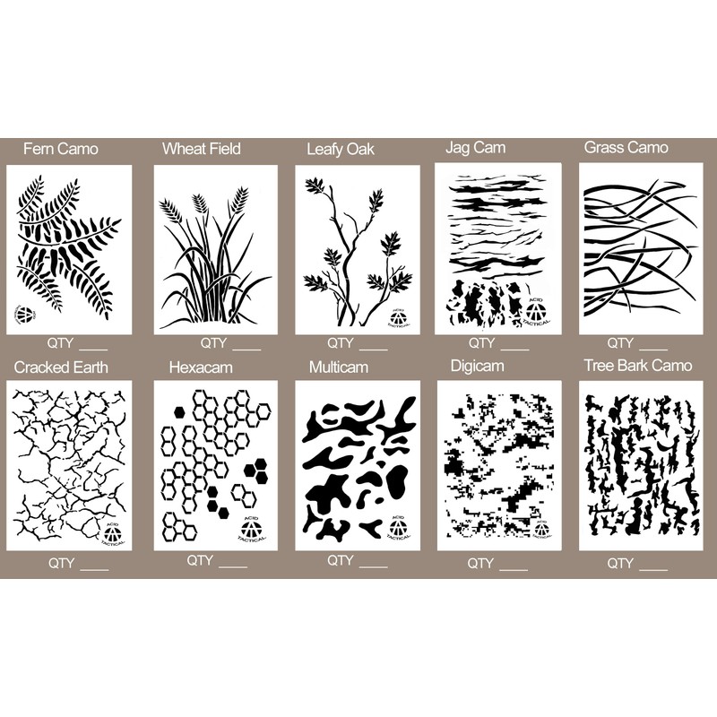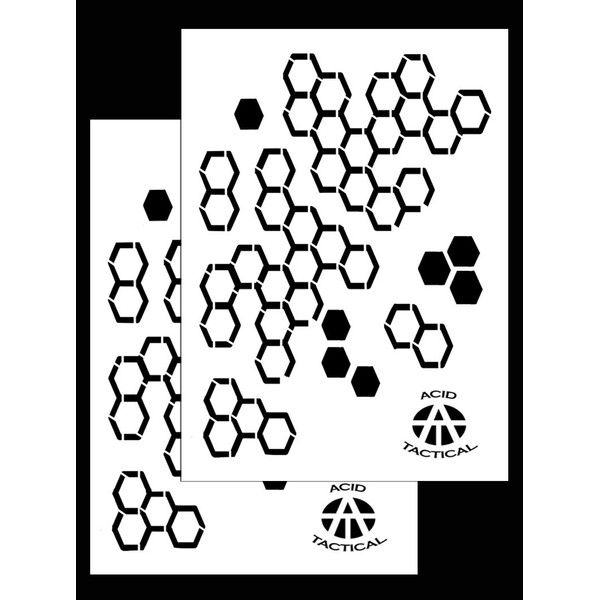 Acid Tactical® 2 Pack - 9x14" Single Design Camouflage Airbrush Spray Paint Stencils - Duracoat Gun (Hexacam Camo)