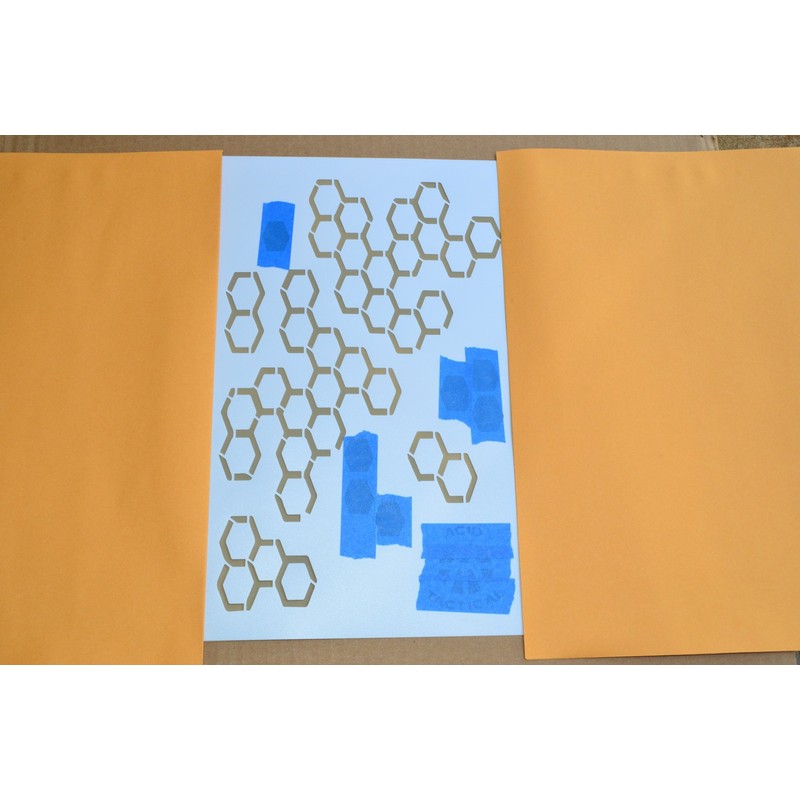 You will receive two stencils of the design pictured - Hexacam Camouflage