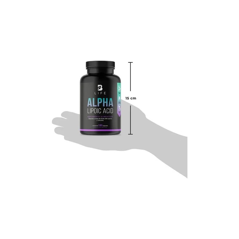 - ¡Disfruta la formulación de Alpha Lipoic Acid B Life! Cada cápsula de 500 mg está diseñada para aportar una potente concentración de Ácido Alfa Lipoico, un valioso antioxidante. Además de estar enriquecida con Cúrcuma para potenciar sus beneficios, ingrediente valioso que otras fórmulas carecen. Contiene180cápsulas. Hasta 3 meses de consumo por envase. Ingiriendo ingredientes naturales de la más alta calidad. Consumir 2 cápsulas al día (1 g) preferiblemente con alimentos (dosis sugerida). Este producto no es un medicamento, su consumo es responsabilidad de quien lo recomienda y usa. Aviso legal