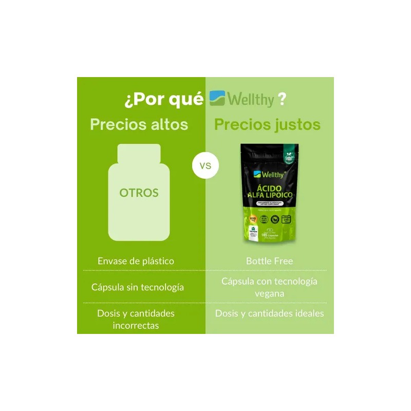 Ácido Alfa Lipoico 600 Mg. 185 Cápsulas Wellthy Sabor Sin Sabor