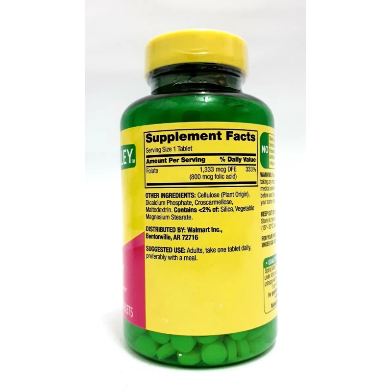 Ácido Fólico Premium Spring es un suplemento con 800 mcg de ácido fólico por tableta, en un frasco de 400 tabletas, vital para el desarrollo del feto y la salud de la mujer en la etapa prenatal.