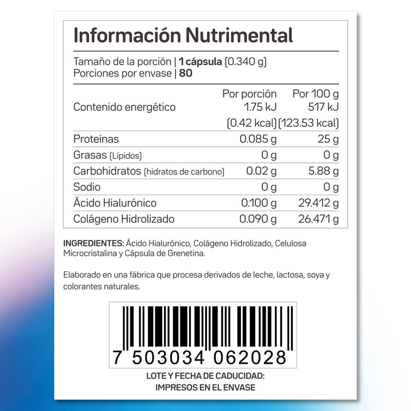 Acido Hialurónico cápsulas 80 con 100 mg HC-PLUS Primetech Nutrition
