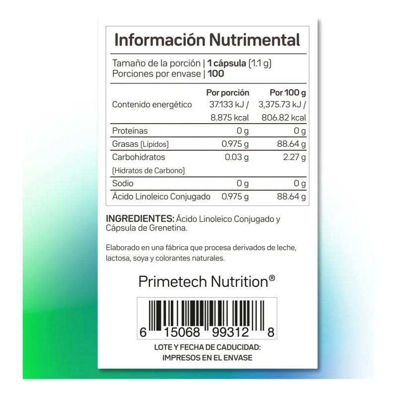 El Ácido Linoleico Conjugado CLA de Primetech Nutrition es tu aliado natural para el control de peso y mejora de la salud metabólica. Con 1,000 mg por cápsula suave, este suplemento de alta pureza favorece la quema de grasa, reduce el almacenamiento de grasa corporal y promueve un metabolismo más eficiente.