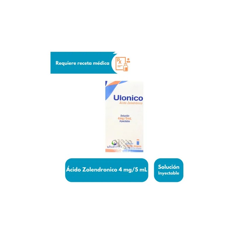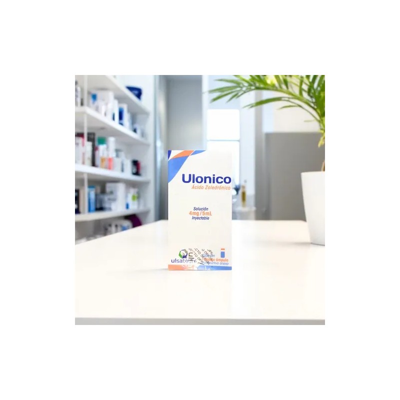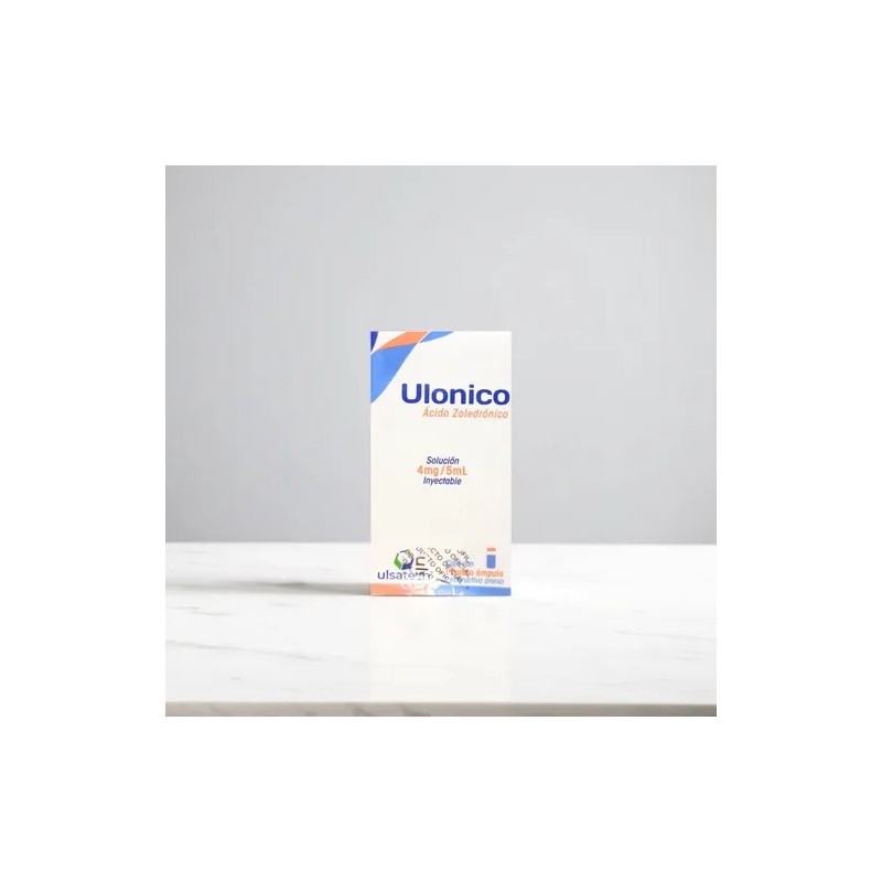 Ácido Zoledrónico Ulonico se presenta en forma de solución inyectable en ámpula, con una concentración de 4 mg en 5 mL. Este producto pertenece a la clase de los bisfosfonatos.