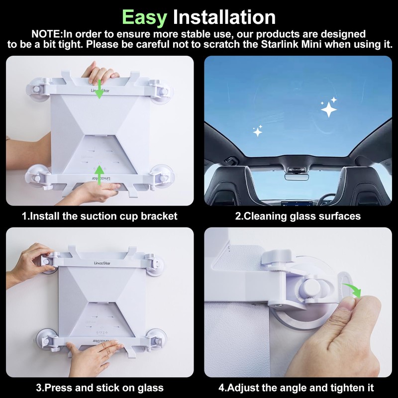 - 【Long-lasting and Stable】The four suction cups are strongly adsorbed, and these brackets can firmly fix Starlink Mini to prevent sliding or falling off, and can remain stable even in the sun.NOTE:In order to ensure more stable use, our products are designed to be a bit tight. Please be careful not to scratch the Starlink Mini when using it.