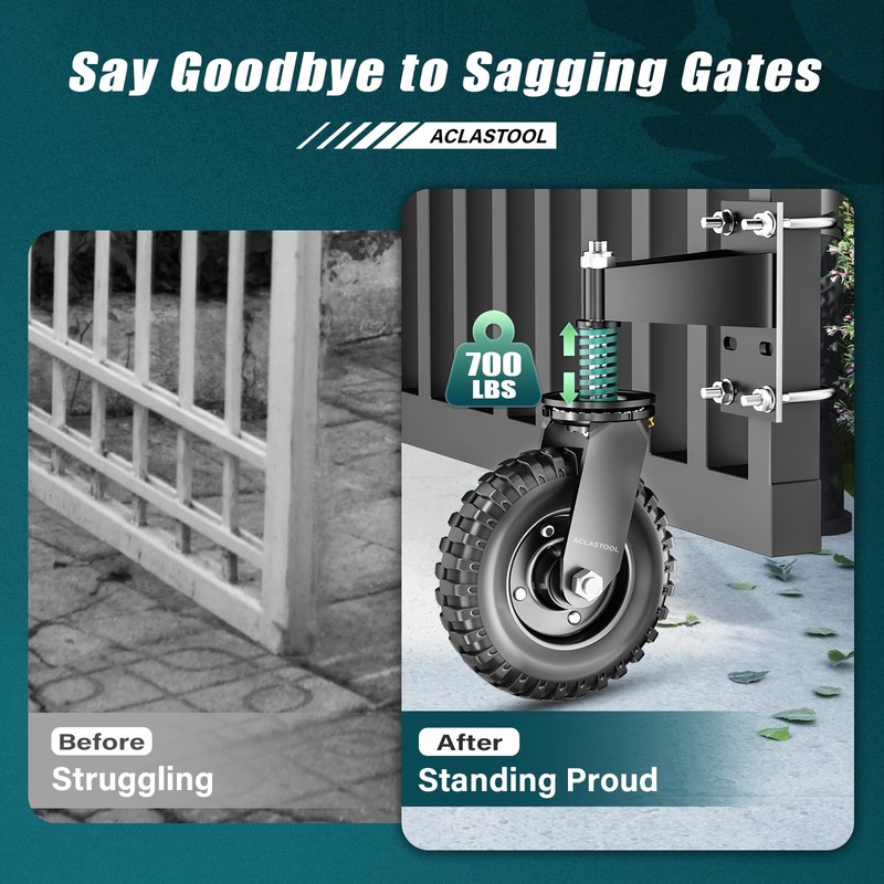 - Say Goodbye to Sagging Gates: Tired of dragging gates? With a 700 lbs load capacity, our upgraded 8-inch heavy duty gate wheels ensure your gate stays upright and strong. It’s the perfect choice for driveways, farms, and large garden gates.
