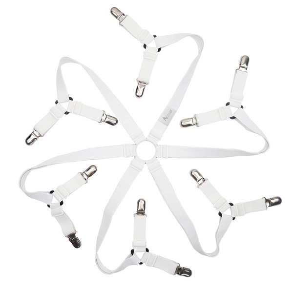 Aclolo Bed Sheet Clips Adjustable Anti-Slip Clips Bed Sheet Slipping Clips Anti-Slip Rubber Bands 6 Sides Triangle (White)