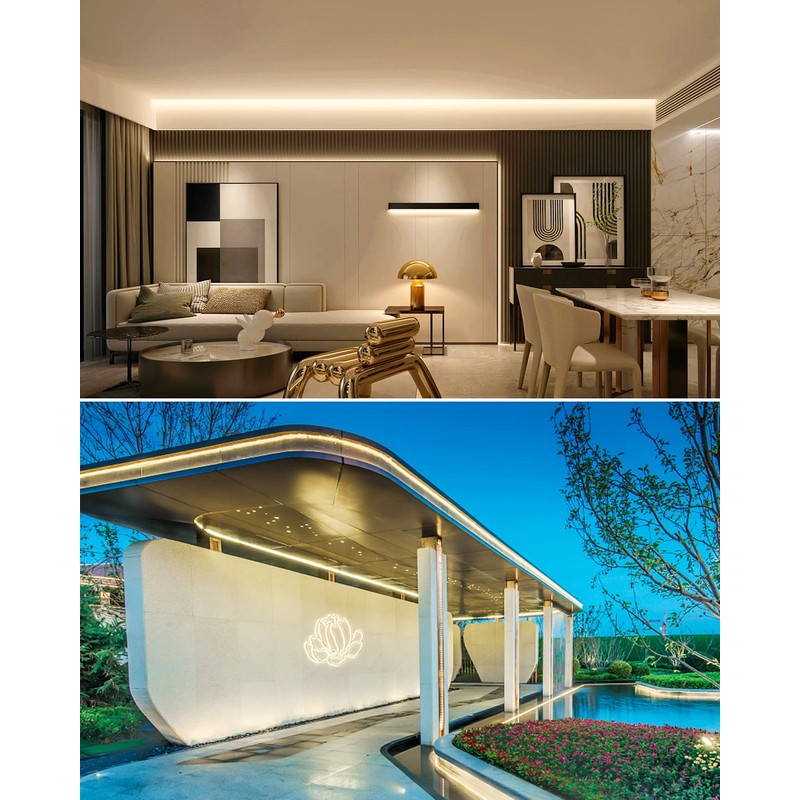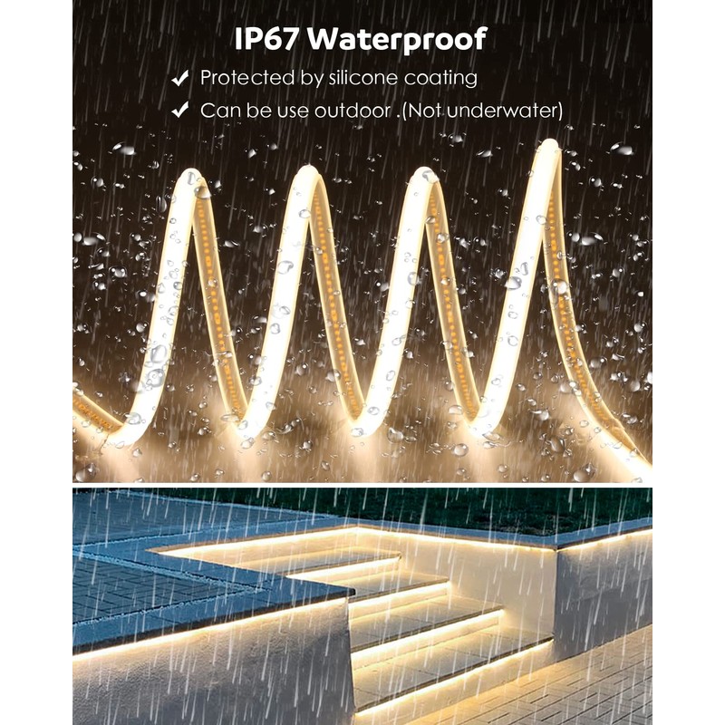 - Waterproof for Outdoor Projects: Waterproof IP65. Yellow diode is covered and sealed by silicone tube, with excellent waterproof performance. Widely used in indoor and outdoor lighting decoration projects, such as bedrooms, kitchens, display cabinets, hotels, bars. It can also be used for outdoor, like courtyard, landscape, garden, outdoor billboard, roof, commercial street and garage and other structure contour decorations