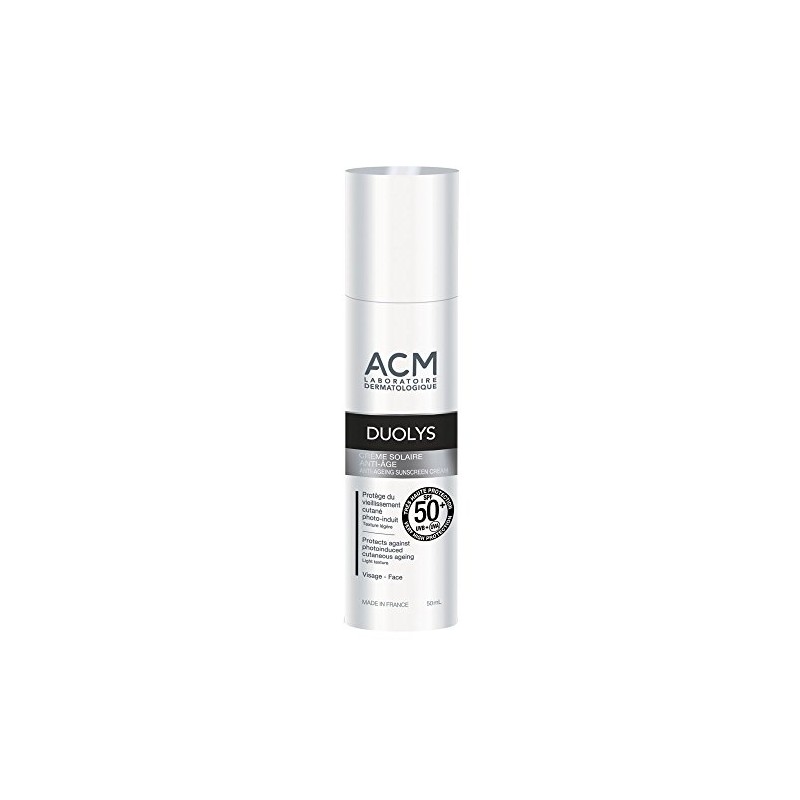 Attributes L sunscreen Age SPF50 + D ACM Duolys formula is a solar for the sensitive, clear and you can take the Unverträglichkeiten Solar. It with a combination of filter organic and screen difference- minerals,, some of the mother of pearl d with freshwater protection your skin from damaging effects of the sun. This treatment ensures a very high sun protection thanks to its index SPF50 +. L sunscreen Age SPF50 + ACM Duolys contains active Oxydanten to fighting the ageing of the skin. Texture liquid and easy provides comfort Easy to use. Conseils d utilisation you're generously L sunscreen Age SPF50 + ACM Duolys 30 minutes before any solar radiation. Replace on a regular basis. Material capacity: 50 ml.