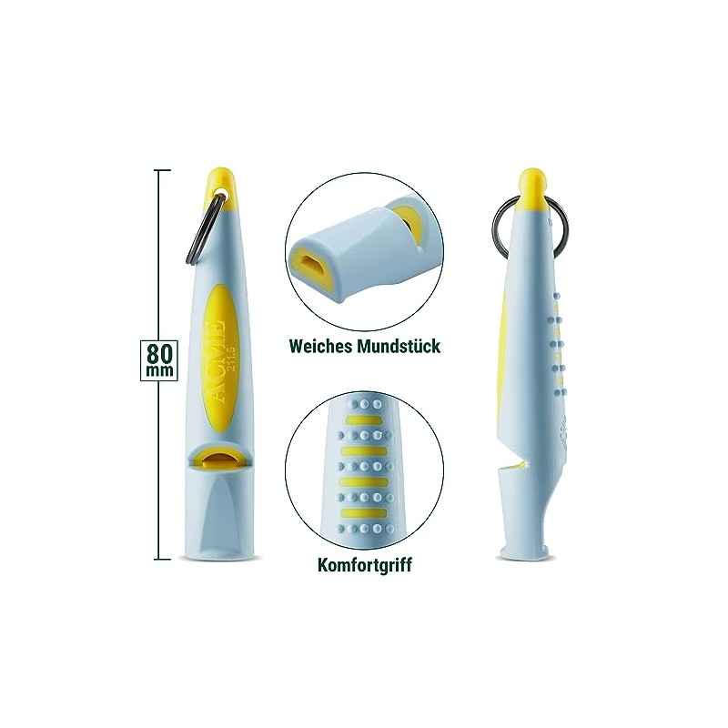 ACME Genuine Professional, BPA-Free Plastic Dog Training Whistle No. 210.5 Alpha with Enhanced Ergonomic Grip, 110 dBA, Short Range, Designed and Made in The UK. Baby Blue on Yellow
