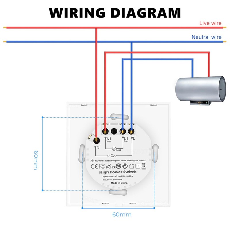 - 20A---Can be used for high-power devices such as water heaters and air conditioners. Please note the maximum power, a neutral wire is required for use, and high-power products are safer and more stable