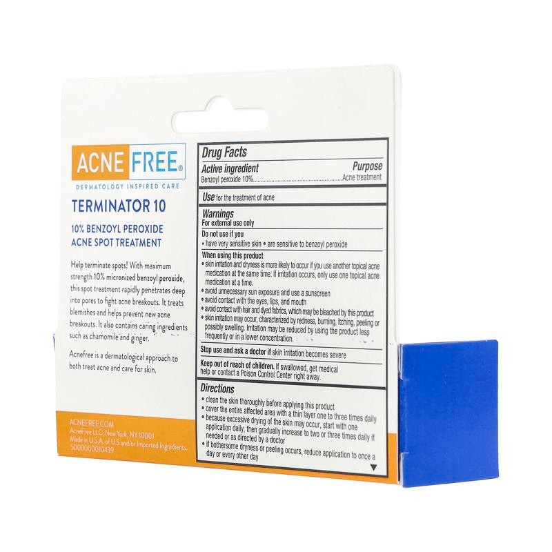 Effectively target stubborn breakouts with ACNE FREE Terminator 10 Severe Acne Spot Treatment. This fast-acting formula penetrates deep to reduce the size, redness, and visibility of pimples, helping you achieve clearer, healthier-looking skin. Perfect for severe or persistent acne, it’s ideal for spot treatment on the face or other problem areas.