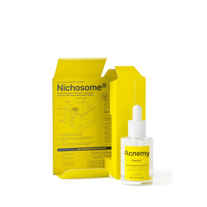 Tratamiento para para eliminar las marcas de acné, a base de ácido glicólico que minimiza las marcas post-espinillas (hiperpigmentación), mejora la textura de la piel, unifica el tono de la piel y mejora la apariencia de las cicatrices de acné. Y por si todavía hay alguna espinilla rebelde en la zona, le hemos añadido ácido salicílico y quora noni el verdadero hacker de la bactería p.acnes, causante del acné, que impide que se reproduzca y reequilibra el microbioma de la piel. Además los ácidos que contiene esta fórmula están diseñados con Nichosome® un sistema exclusivo de liberación de activos que hace que nuestros productos no irriten la piel, transporten hasta 12 veces más cantidad de activo que cuando se usa de forma libre (wow!) y potenciar increíblemente la eficacia de nuestras fórmulas. Ideal para el tratamiento del acné.