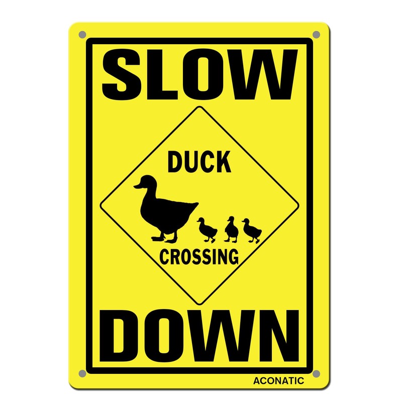 ACONATIC Aluminum Metal Sign - 'Slow Down - Duck Crossing' Warning Sign, 16"X12", Yellow, Minimalist Style