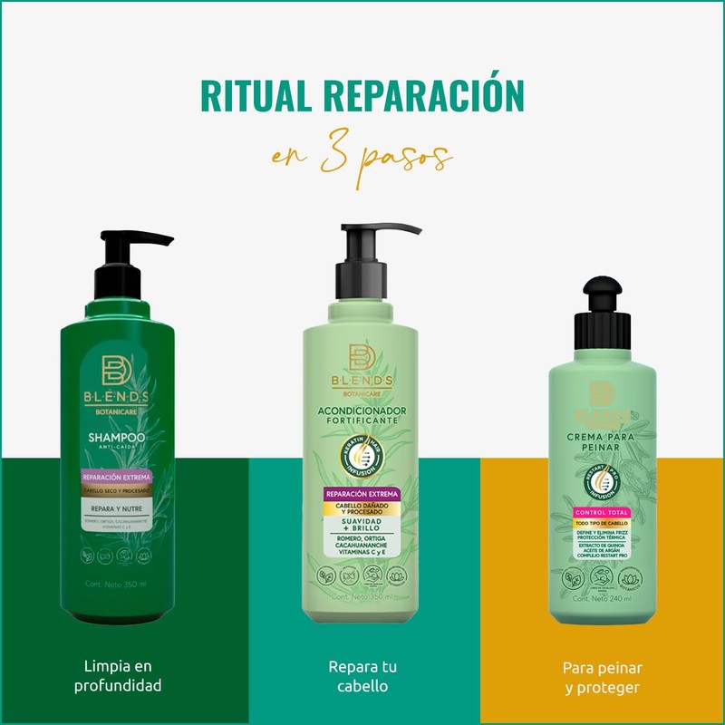 - Fórmula Reparadora y Fortificante: Contiene Reparage, Romero, Ortiga, Cacahuananche, Vitamina C y Vitamina E para fortalecer la fibra capilar y prevenir la caída por quiebre.