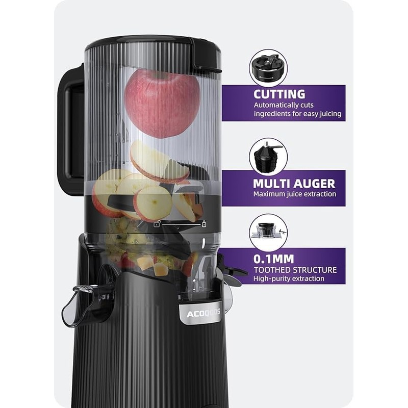ACOQOOS Juicer Machines, 5.3" Wide Chute for Whole Fruit and Vegetable,1.8L Auto-Feed Time-Saver, Slow Masticating High Yield, Easy to Clean Cold Press Juicer with 2 Cups