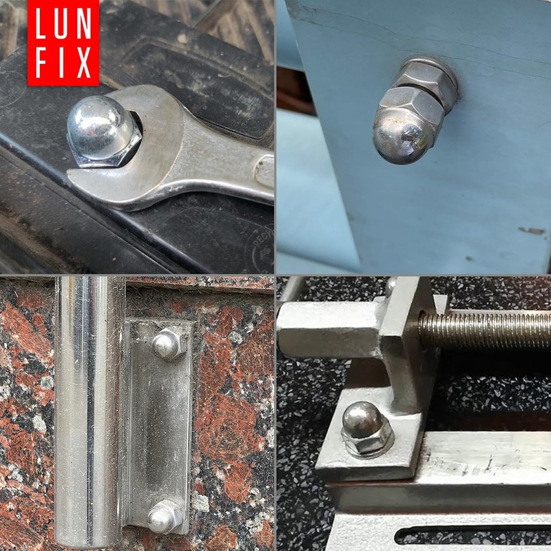 - CORROSION PROTECTION Lun Fix cap nuts are covered with a zinc layer, which provides high corrosion protection. This significantly extends its service life under normal humidity and low corrosion influences. Thanks to the use of high-quality galvanised steel, our protective caps nuts are rust and oxidation resistant. However, we recommend that you only use them indoors or in protected outdoor areas.