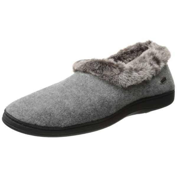 Acorn Women's Faux Fur Chinchilla Collar Slipper, Stone, Medium / 6.5-7.5