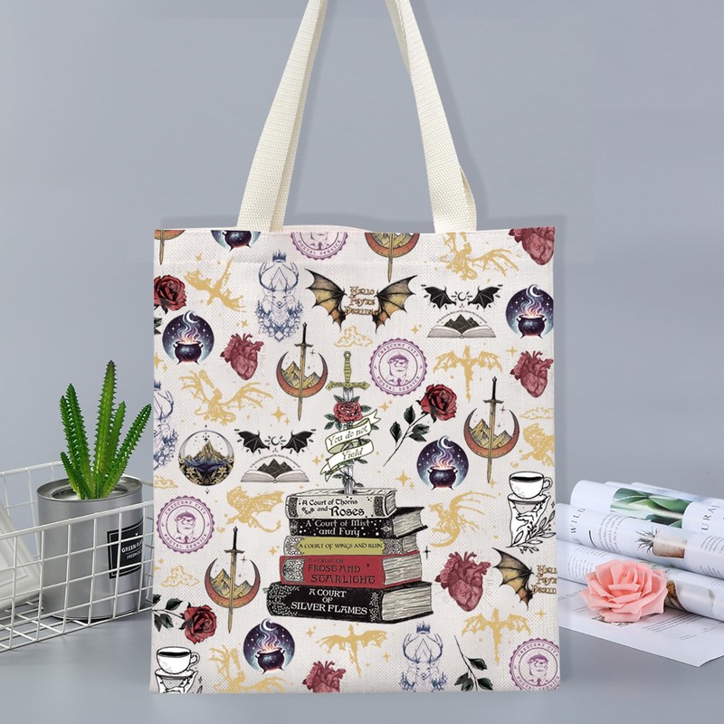 ACOTAR Inspired Gift Fantasy Novel Inspired Gifts Books Lover Gift A Court of Thorns and Rose Tote Bag SJM Gifts (not yield FULL T CA)