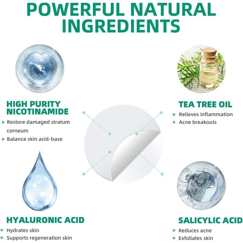 - 【Multiple Active Ingredients Provide Acne Treatment】Acne healing patches are with salicylic acid frees pores of acne-causing bacteria and dirt and soothing tea tree oil extract reduces the appearance of redness, niacinamide improves the texture and tone of your skin, while hyaluronic acid is a great humectant, which means it retains moisture.