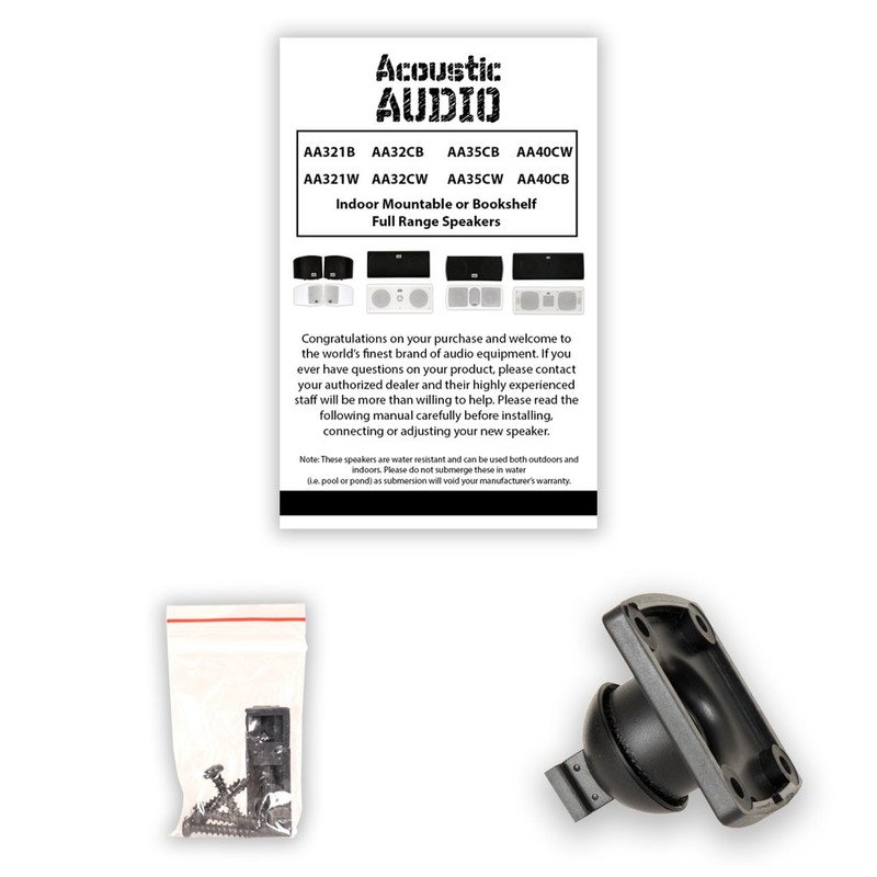 • WHAT'S IN THE BOX - 1 Acoustic Audio by Goldwood AA32CB center channel speaker, 4 AA321B speakers, mounting brackets with hardware, instruction manual. Use for home theater systems and surround sound systems