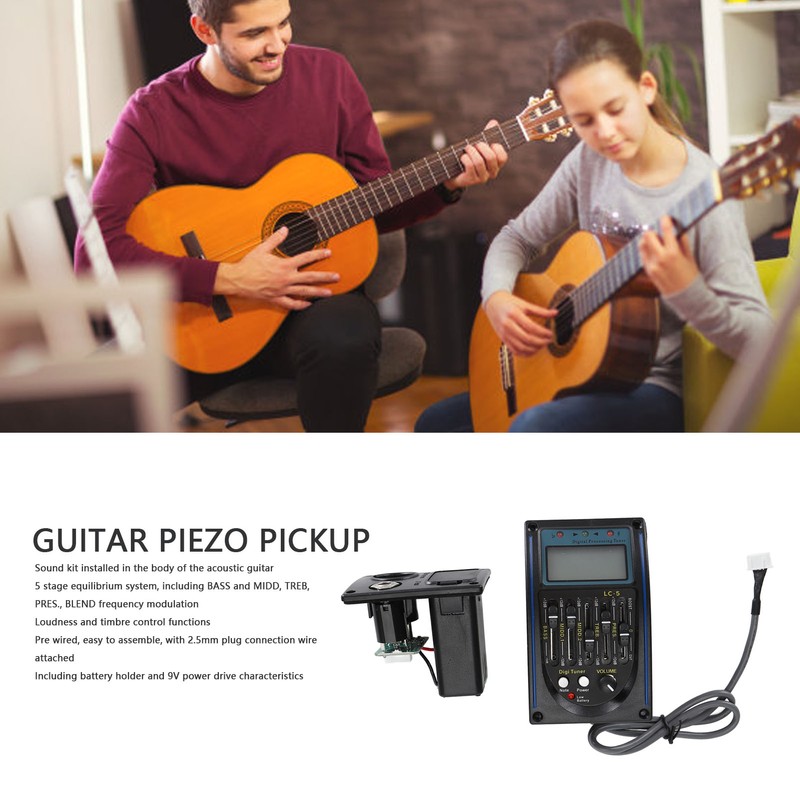 Acoustic Guitar 5 Band EQ Equalizer Pre Wired Guitar Preamps Piezo Pickup with Tuner Function