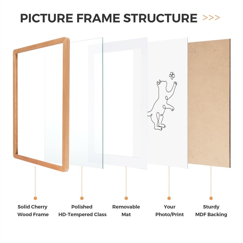 - Solid Cherry Wood Frame: Crafted from premium solid wood, each frame boasts distinct grain, color, satin finish, and texture, ensuring you receive a truly unique product. The natural variations in the wood provide a personalized touch, making it a standout piece in any room. This 22x28 frame combines durability with aesthetic appeal, offering a timeless way to display your cherished memories.