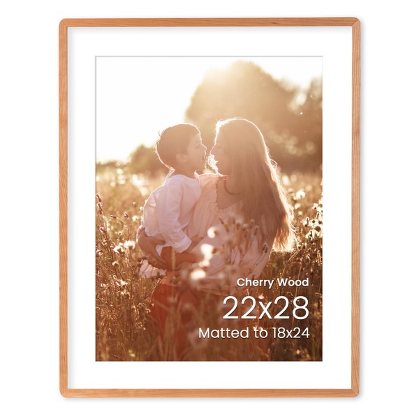 Acovy 22x28 Poster Frame, Natural Solid Cherry Wood 22 x 28 Frame, Rounded Corner 22"x28" Large Picture Frame HD Tempered Glass, 22 by 28 Photo Frame Matted to 18x24, 22x28 Wood Frame for Wall, 1 Pack