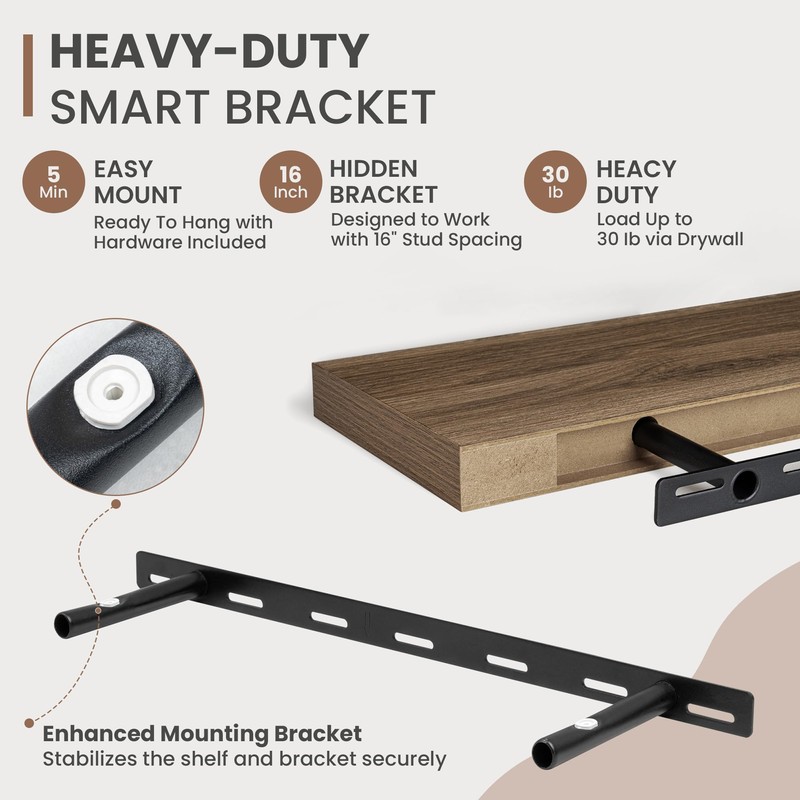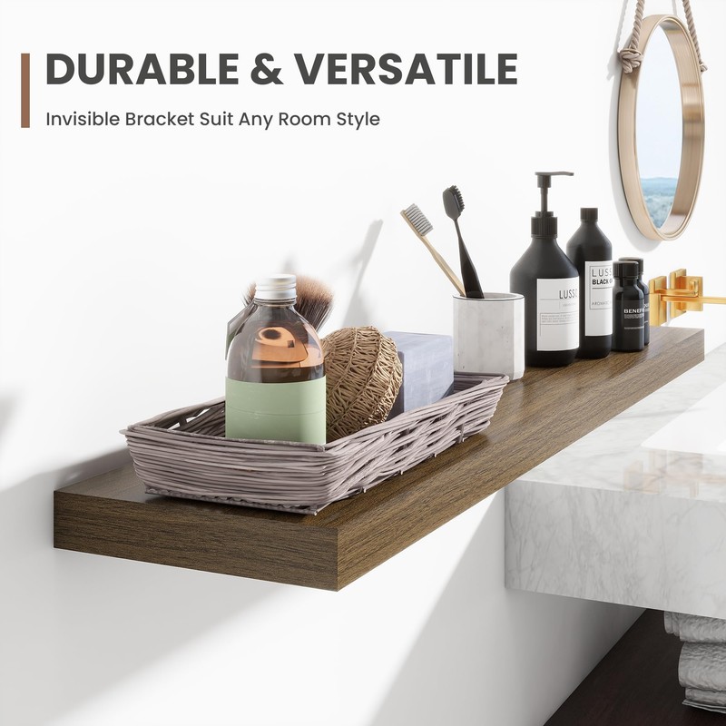 - [STABLE & SECURE INSTALLATION]: Equipped with a robust, hidden mounting bracket, these 24 inche floating shelves provide solid support for your items. Designed for easy, secure installation, they include all necessary hardware for a firm, wobble-free setup, so you can confidently display decor, photos, or functional items with style.