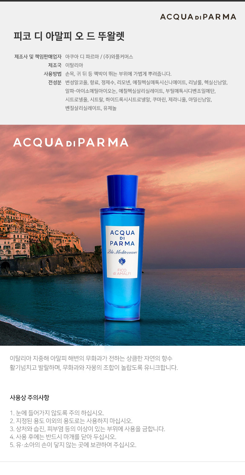 아쿠아 디 파르마 피코 디 아말피 오 드 뚜왈렛 30ml
