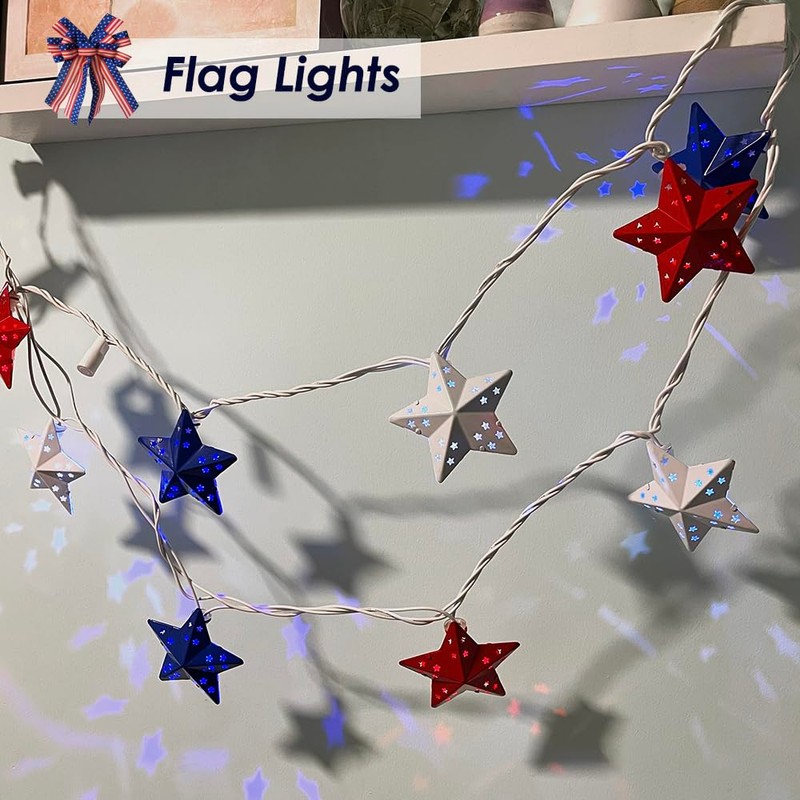 ACRAFT Twinkle Star String Lights Plug in Fairy Lights for Bedroom with End-to-end Connector Ambient Lighting Night Lights Nursery Light (Red White and Blue)