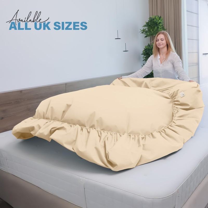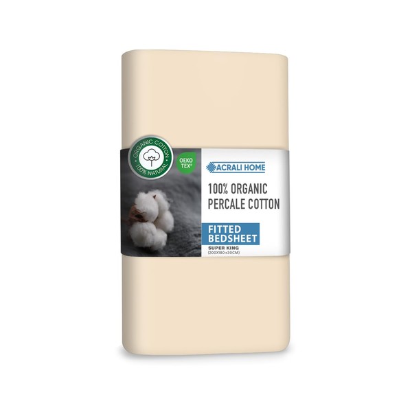 Acrali Home GOTS Cert. 100% Organic Percale Cotton Superking Fitted Sheet - 30cm/12in Deep Super King Fitted Sheet - Hotel Quality, Soft and Breathable Fitted Sheets Super King Size - Cream 200x180cm