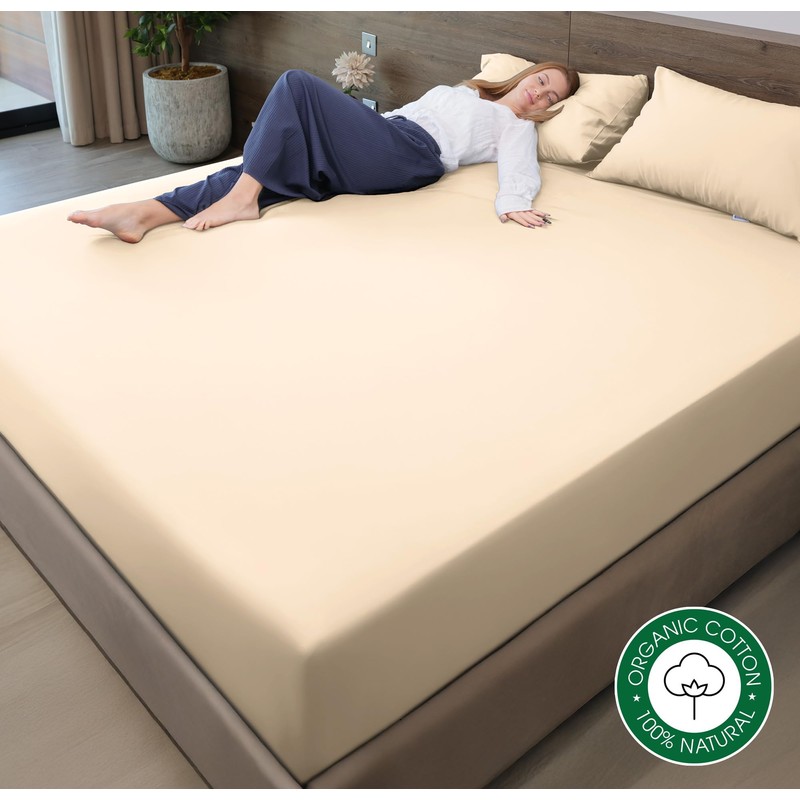 - ✔️ Perfect for All Super King Beds: These luxury organic cotton cream superking fitted sheets are tailored to fit any standard super king bed, making them ideal for home use, guest rooms, and rental properties. The timeless design and versatile color seamlessly complement any bedroom décor.