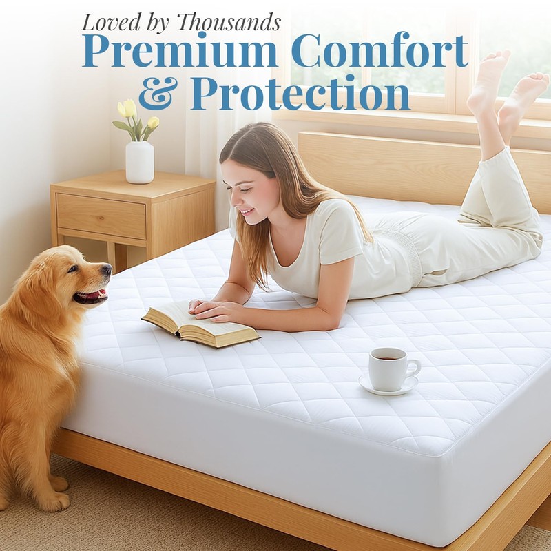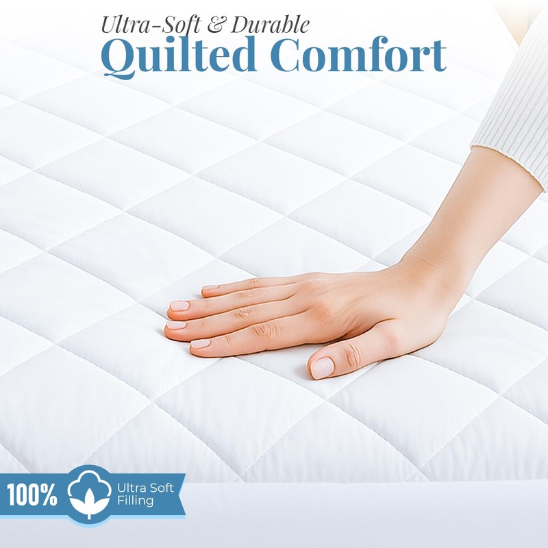 - ✔ Soft Quilted Comfort: Experience a new level of comfort with our premium quilted design, featuring an ultra-soft 100% microfiber top layer and plush virgin hollow fiber (polyester) filling. This mattress protector single size bed extra cushioning provides a luxurious feel, enhancing sleep quality by offering gentle support while protecting your mattress from general wear, sweat, and minor spills. The fluffy padding not only adds an extra layer of coziness but also relieves pressure points, helping you wake up refreshed and energized.