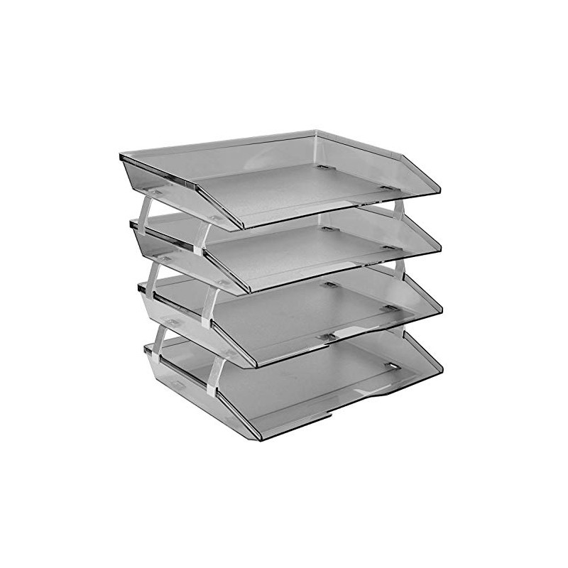 Acrimet Facility 4 Tier Letter Tray Side Load Plastic Desktop File Organizer (Smoke Color)