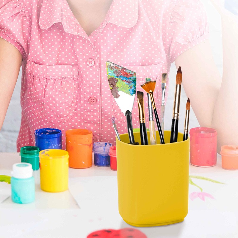 Acrimet Jumbo Pencil Holder, Pen Cup, Caddy Super-Sized Desktop Organizer for Students, Artists and Professionals (Plastic) (Solid Yellow Color)