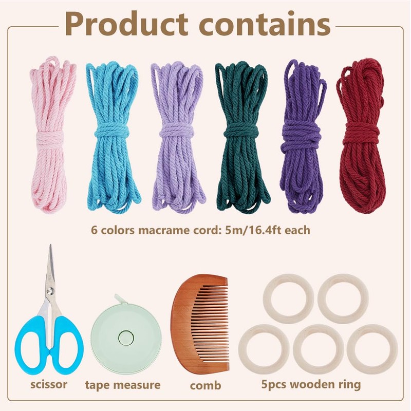 • [MAKE YOUR OWN WREATHS WITH JUST ONE PURCHASE]: Our DIY macrame wreath kit is composed of 5 wooden circular frames, 6 colors of cotton ropes, and accessories such as scissors and tape measures. You can DIY make 5 wreaths yourself through our macrame garland DIY kit.