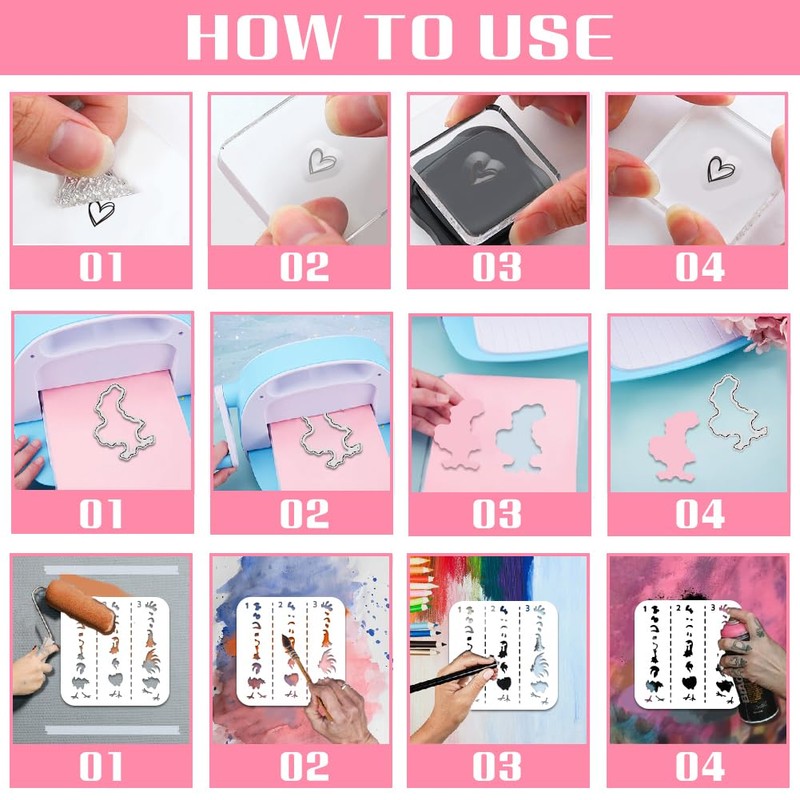 - WIDE USAGE: The cartoon chicken layering stamp stencil dies set, and is suitable for making cards, post cards, photo album, scrapbook, journal and any other DIY delicate handcraft. It’s also a good gift to give to a child or friend who loves crafts.